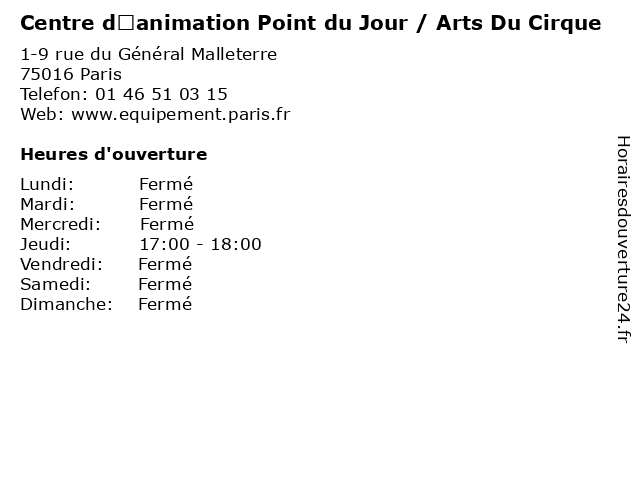 | Mercredi | Fermé |
