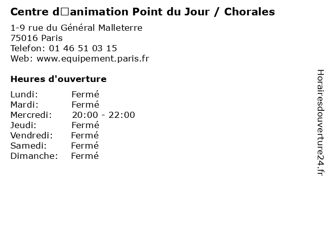 Termes de recherche pour Centre d’animation Point du Jour / Chorales:du, équipement, point, services, centre, jour, jardins, l'heure, livre, mediatheque, d’animation, centres d'animation, chorales |