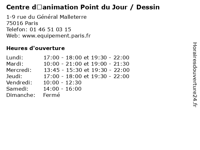 Termes de recherche pour Centre d’animation Point du Jour / Dessin:du, équipement, point, services, centre, jour, jardins, l'heure, livre, dessin, mediatheque, d’animation, centres d'animation |