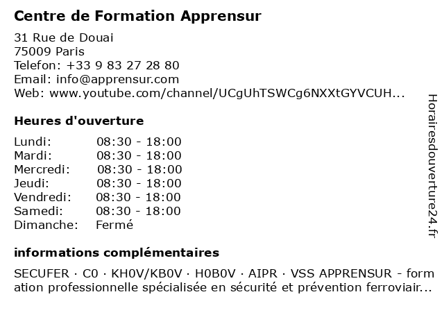 | Samedi | 08:30-18:00 |