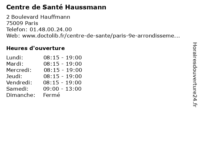 Termes de recherche pour Centre de Santé Haussmann:de, cabinet, centre, santé, medical, haussmann, secretariat, docteur, consultation, ophtalmologie, hauffmann |