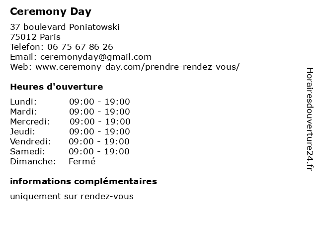 | Samedi | 09:00-19:00 |