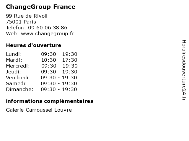 1 ChangeGroup France (Distance: 0,39 km) 208 Rue de Rivoli, 75001 Paris argent, banque, change, changegroup, conversion, devise, france 2 ChangeGroup France (Distance: 0,90 km) 49 Avenue de l'Opera, 75002 Paris argent, banque, change, changegroup, conversion, devise, france, the 3 ChangeGroup France (Distance: 1,33 km) 19 Boulevard Saint Michel, 75005 Paris argent, banque, change, changegroup, conversion, devise, france 4 ChangeGroup France (Distance: 1,36 km) 50 rue Chaussée d'Antin, 75009 Paris argent, banque, change, changegroup, conversion, devise, france 5 ChangeGroup France (Distance: 1,41 km) 80 rue de Provence, 75009 Paris argent, banque, change, changegroup, conversion, devise, france 6 ChangeGroup France (Distance: 2,93 km) 150 Avenue des Champs-Elysées, 75008 Paris argent, banque, change, changegroup, conversion, devise, france, the |