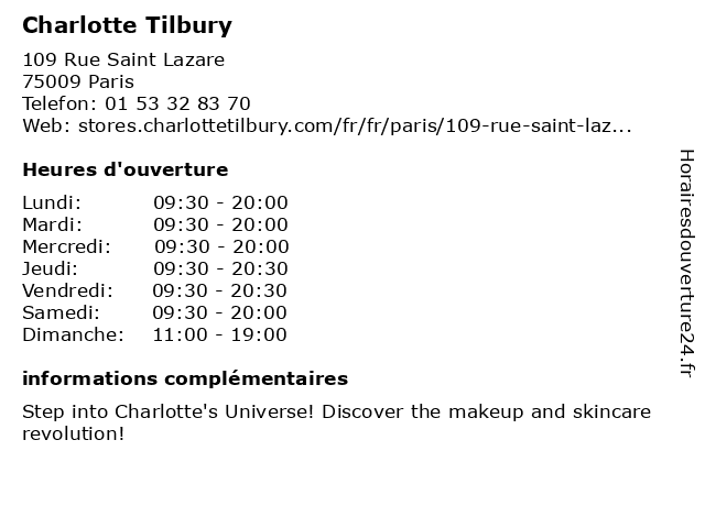 2 Charlotte Tilbury (Distance: 0,57 km) 21/ 23 Bld Haussmann, 75009 Paris charlotte, clinique de soins de la peau, drugstores, maquilleur/maquilleuse, parfumerie, salon de beauté, tilbury 3 Charlotte Tilbury (Distance: 2,07 km) 4 Passage La Canopée C.c. La Canopée, 75001 Paris charlotte, clinique de soins de la peau, drugstores, maquilleur/maquilleuse, parfumerie, salon de beauté, tilbury 4 Charlotte Tilbury (Distance: 2,07 km) 75 Rue De Rivoli, 75001 Paris charlotte, clinique de soins de la peau, drugstores, maquilleur/maquilleuse, parfumerie, salon de beauté, tilbury 5 Charlotte Tilbury (Distance: 4,02 km) 50 Rue De Passy, 75016 Paris charlotte, clinique de soins de la peau, drugstores, maquilleur/maquilleuse, parfumerie, salon de beauté, tilbury 6 Charlotte Tilbury (Distance: 4,37 km) 05 Rue Linois Cc Beaugrenelle Ilot Pegase, 75015 Paris charlotte, clinique de soins de la peau, drugstores, maquilleur/maquilleuse, parfumerie, salon de beauté, tilbury |