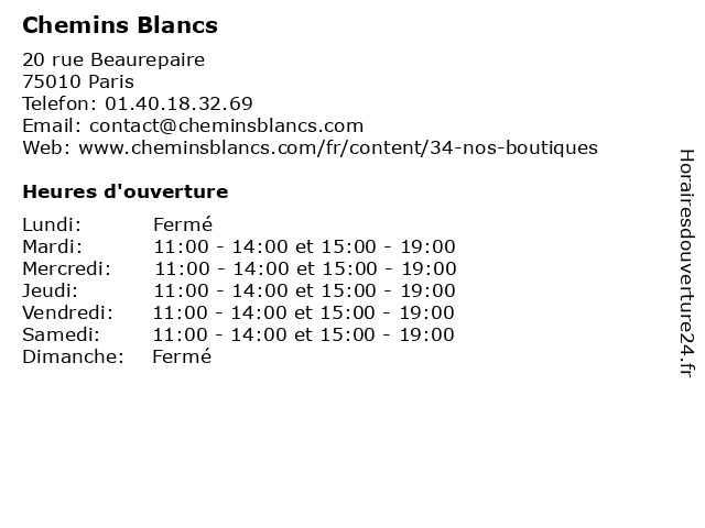 | Mercredi | 11:00-14:00 et 15:00-19:00 |