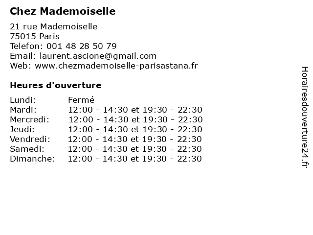 | Mardi | 12:00-14:30 et 19:30-22:30 |