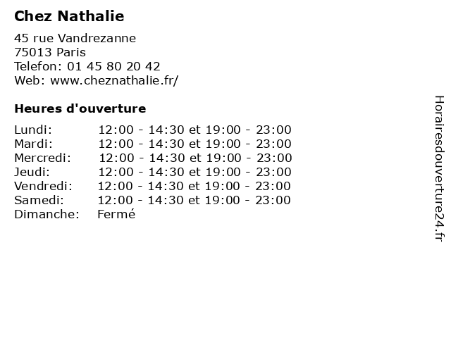| Jeudi | 12:00-14:30 et 19:00-23:00 |