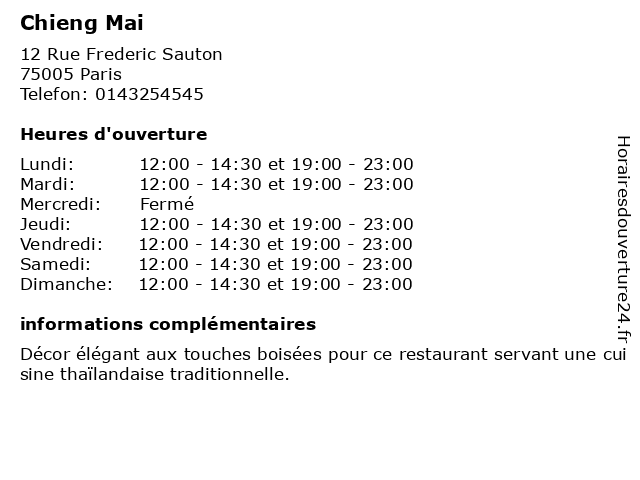 | Mardi | 12:00-14:30 et 19:00-23:00 |