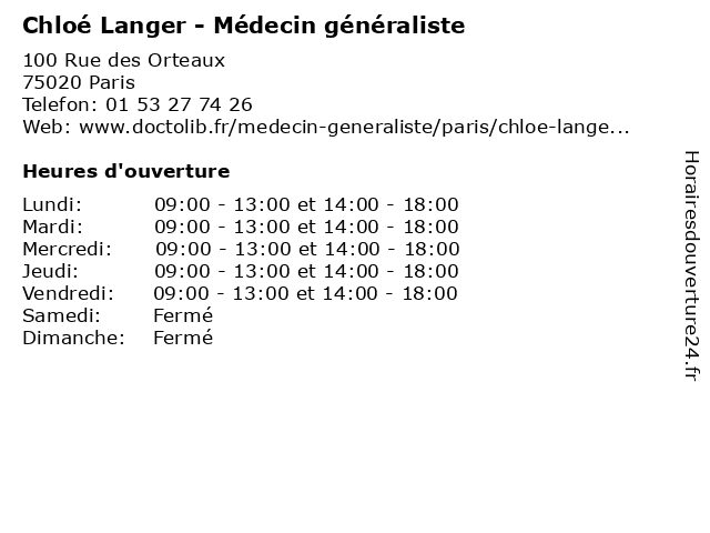 1 Dr Chloé Flageul - Médecin généraliste (Distance: 0,58 km) 46-48 rue d'Avron, 75020 Paris chloe, chloé, consultation, docteur, dr, dr., flageul, générale, généraliste, médecin, médecine, rendez, santé, sur, vous 2 Chloé Rossi - Thérapeute Energeticienne (Distance: 0,59 km) 66 rue des Grands Champs, 75020 Paris chloé, corporelle, energeticienne, medical, rossi, thérapeute, thérapeutes, traitement 3 Chloé Bonneau - Masseur-kinésithérapeute (Distance: 0,70 km) 29 Boulevard Davout, 75020 Paris bonneau, chloé, docteur, kine, kinesitherapeute, kinésithérapeute, masseur 4 Dr Chloé Tambosco - Médecin généraliste (Distance: 1,04 km) 5 Rue de Valmy, 93100 Montreuil chloé, dr, généraliste, médecin, médecine, médical, pharmaceutique, tambosco, traitement 5 Chloé Bauden - Psychologue (Distance: 1,15 km) 30 rue de la Cour des Noues, 75020 Paris adultes, bauden, cabinets, chloé, enfants, médecins, psychologue, secrétariat, soutien à la parentalité, thérapies 6 Chloé Renouf - Sage-femme (Distance: 1,27 km) 4 rue de la Chine, 75020 Paris chloe, chloé, consultation, docteur, dr, femme, med, médecin, renouf, sage, traitement |