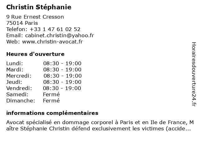 2 Stéphanie Abergel - Psychologue (Distance: 0,55 km) 63 Rue D’Alesia, 75014 Paris abergel, cabinets, médecins, psychologue, secrétariat, stéphanie, thérapies 3 Stéphanie Maubrun - Psychothérapeute (Distance: 1,00 km) 9 Rue du Maine, 75014 Paris folie, maubrun, psychiatre, psychiatrie, psychiatrique, psychothérapeute, stéphanie 4 Dr Stéphanie Saada - Médecin biologiste (Distance: 1,14 km) 42 boulevard Jourdan, 75014 Paris biologiste, consultation, docteur, dr, med, médecin, médecine, saada, stéphanie, traitement 5 Dr Stéphanie Emilie - Rhumatologue (Distance: 1,46 km) 187 A Rue Raymond Losserand, 75014 Paris consultation, docteur, dr, emilie, med, médecin, médecine, rhumatologue, stéphanie, traitement 6 Dr. Robin Stéphanie - Ostéopathe (Distance: 1,83 km) 17 Rue Sadi Carnot, 92120 Montrouge docteur, dr., medecins, ostéopathe, robin, sante, stéphanie |