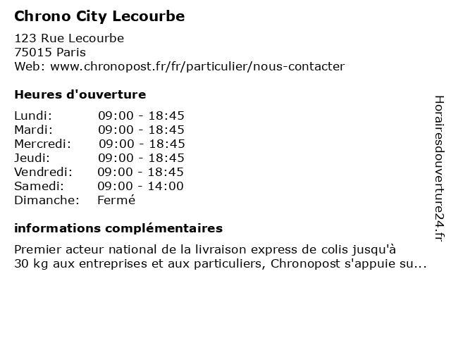 | Lundi | 09:00-18:45 |