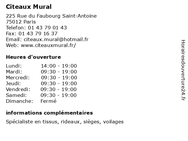 1 Citeaux Sphère (Distance: 0,22 km) 45 Rue de Citeaux, 75012 Paris aux, boutique, citeaux, restaurants, sphere, sphère 2 Benjamin Moore - Peinture et revêtement mural (Distance: 5,57 km) 126 boulevard Haussmann, 75008 Paris benjamin, carrelage, décoration, et, moore, mural, peinture, produits, revêtement 3 Carrosserie des Citeaux (Distance: 13,40 km) 1 rue Edison, 92140 Clamart atelier, automobile, automobiles, carrosserie, citeaux, concéssionnaire, des, garage, reparation, vente 4 La Palette (Distance: 0,22 km) 255 Rue du Faubourg Saint-Antoine, 75011 Paris colle, enduit, la, mural, palette, peinture, revêtement, sol, vente 5 Anna Ka Bazaar (Distance: 0,72 km) 16 Rue Keller, 75011 Paris anna, bazaar, ka, magasin de tissu, mercerie indienne 6 Neology (Distance: 1,49 km) 78 boulevard Beaumarchais, 75011 Paris canapés, cuir, fabricant, fauteuils, neology, tissu |