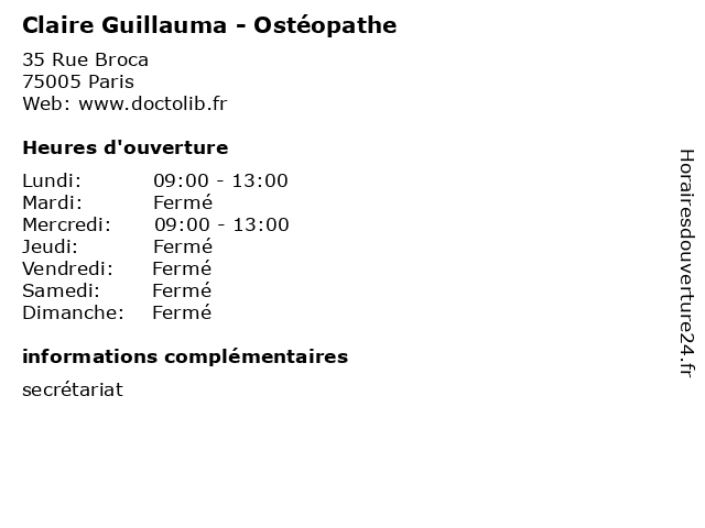 1 Claire Picaut - Psychologue (Distance: 0,08 km) 42 Boulevard de Port-Royal, 75005 Paris claire, folie, picaut, psychiatre, psychiatrie, psychiatrique, psychologue 2 Dr Claire auzolle - Gastro-entérologue et hépatologue (Distance: 0,24 km) 2 Boulevard Arago, 75013 Paris anus, auzolle, claire, dr, enterologue, entérologue, et, gastro, hépatologue, sante 3 Dr Claire Tarnaud - Médecin généraliste (Distance: 0,37 km) 85 boulevard du Port Royal, 75013 Paris claire, consultation, docteur, dr, généraliste, med, médecin, tarnaud, traitement 4 Claire Le Menager - Pédicure-podologue (Distance: 1,35 km) 14 Rue de la Providence, 75013 Paris cheville, claire, le, menager, orteil, pied, podologue, pédicure 5 Maître Claire Di Crescenzo - Avocat (Distance: 1,43 km) 12 Rue Lagrange, 75005 Paris avocat, claire, crescenzo, di, justice, lois, maitre, maître 6 Maître Claire Josserand-Schmidt - Avocate (Distance: 1,50 km) 9 Rue Lagrange, 75005 Paris avocate, avocats, cabinet, claire, conseils, contentieux, josserand, juridique, justice, litiges, maître, schmidt, services |