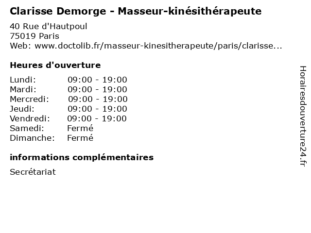 | Lundi | 09:00-19:00 |