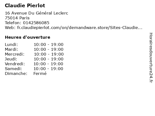 1 Claudie Pierlot (Distance: 1,84 km) 30 Avenue d'Italie, 75013 Paris accessoires, claudie, mode, pierlot, prêt-à-porter, vêtements 2 Claudie Pierlot (Distance: 2,11 km) 27 Rue Saint Sulpice, 75006 Paris accessoires, claudie, mode, pierlot, prêt-à-porter, vêtements 3 Claudie Pierlot (Distance: 3,87 km) 15 Rue de Linois, 75015 Paris accessoires, claudie, mode, pierlot, prêt-à-porter, vêtements 4 Claudie Pierlot (Distance: 4,25 km) 2 Rue Scribe, 75009 Paris accessoires, claudie, mode, pierlot, prêt-à-porter, vêtements 5 Claudie Pierlot (Distance: 4,46 km) 33 Avenue Des Champs Elysees, 75008 Paris accessoires, boutique, claudie, france, pierlot 6 Claudie Pierlot (Distance: 4,94 km) 6 Rue de Marseille, 75010 Paris accessoires, claudie, mode, pierlot, prêt-à-porter, vêtements |