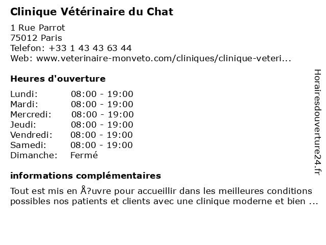 1 Cabinet vétérinaire Crozatier - Paris 12 - Consultations Chien, Chat et NAC - Sevetys (Distance: 0,58 km) 47 Rue Crozatier, 75012 Paris 12, cabinet, chat, chien, consultations, crozatier, et, nac, paris, sevetys, vétérinaire 2 Le Chat Bossu (Distance: 0,59 km) 126 rue du Faubourg Saint Antoine, 75012 Paris bossu, café, chat, le, restaurants 3 Le Chat Ivre (Distance: 0,92 km) 22 Rue des Taillandiers, 75011 Paris bar, bistro, bistrot, brasserie, café, chat, ivre, le, restaurant, restauration 4 Clinique vétérinaire Montgallet (Dr Riviere, Noeuveglise et Housant) (Distance: 1,18 km) 23 rue Montgallet, 75012 París clinique, dr, et, housant, montgallet, montgallet., noeuveglise, riviere, services, veterinaire, vétérinaire 5 Ramsay-Clinique Geoffroy St Hilaire (Distance: 1,36 km) 59 Rue Geoffroy St Hilaire, 75005 Paris cancer, clinique, geoffroy, hilaire, hôpitaux, ramsay, santé, services, st 6 Le Chat Pitre (Jeunesse) (Distance: 1,73 km) 22 rue Duchefdelaville, 75013 Paris chat, jeunesse, le, librairie, livre, paris, pitre |
