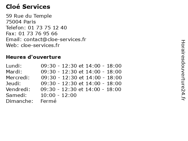 | Lundi | 09:30-12:30 et 14:00-18:00 |