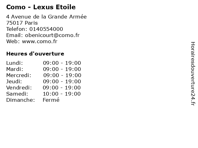 | Lundi | 09:00-19:00 |
