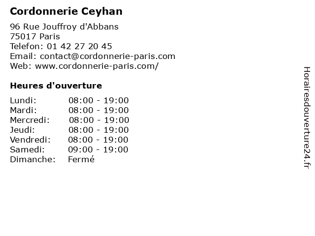 1 SERRURERIE CORDONNERIE DES BATIGNOLLES (Distance: 0,77 km) 12 Rue des Batignolles, 75017 Paris batignolles, cordonnerie, des, serrurerie 2 Cordonnerie Noé (Distance: 1,52 km) 13 Rue d'Amsterdam, 75008 Paris cafe, chaussures, cordonnerie, enfants, homme, mode femme, noé, restaurant, service, sport 3 Cordonnerie Multi-services Lina Cordo (Distance: 1,91 km) 65 Rue Louis Rouquier, 92300 Levallois-Perret cordo, cordonnerie, lina, multi, services 4 Cordonnerie L'Echoppe (Distance: 1,95 km) 66 rue Lamark, 75018 Paris chaussure, clé, cordonnerie, l'echoppe, réparation, sac 5 Cordonnerie du Cime (Distance: 3,32 km) 108-116 Avenue Charles de Gaulle, 92200 Neuilly-sur-Seine beaute, cafe, chaussures, cime, cordonnerie, du, enfants, lingerie, mode femmes, mode hommes, restaurant, sport 6 Cordonnerie Grenelle (Distance: 3,33 km) 165 Rue de Grenelle, 75007 Paris chaussures, cordonnerie, cordonnier, grenelle, services |