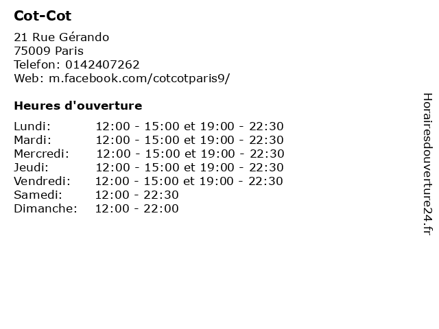 | Jeudi | 12:00-15:00 et 19:00-22:30 |