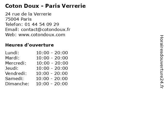 1 Coton Doux - Paris Rivoli (Distance: 0,18 km) 38 bis rue de Rivoli, 75004 Paris accessoires, coton, doux, enfants, filles, garçons, habillement, mode, paris, pret à porter, rivoli, vêtements 2 Coton Doux - Paris Sainte-Croix (Distance: 0,21 km) 3 rue Sainte-Croix-de-la-Bretonnerie, 75004 Paris accessoires, coton, croix, doux, enfants, filles, garçons, habillement, mode, paris, pret à porter, sainte, vêtements 3 Coton Doux - Paris Saint-Louis (Distance: 0,53 km) 82 rue Saint-Louis en l'île, 75004 Paris accessoires, coton, doux, enfants, filles, garçons, habillement, louis, mode, paris, pret à porter, saint, vêtements 4 Coton Doux - Paris Turenne (Distance: 0,72 km) 37 Rue de Turenne, 75003 Paris accessoires, coton, doux, enfants, filles, garçons, habillement, mode, paris, pret à porter, turenne, vêtements 5 Coton Doux - Paris Petit Pont (Distance: 0,81 km) 4 rue du Petit Pont, 75005 Paris accessoires, coton, doux, enfants, filles, garçons, habillement, mode, paris, petit, pont, pret à porter, vêtements 6 Coton Doux - Paris Mazarine (Distance: 1,25 km) 68 Rue Mazarine, 75006 Paris accessoires, coton, doux, enfants, filles, garçons, habillement, mazarine, mode, paris, pret à porter, vêtements |