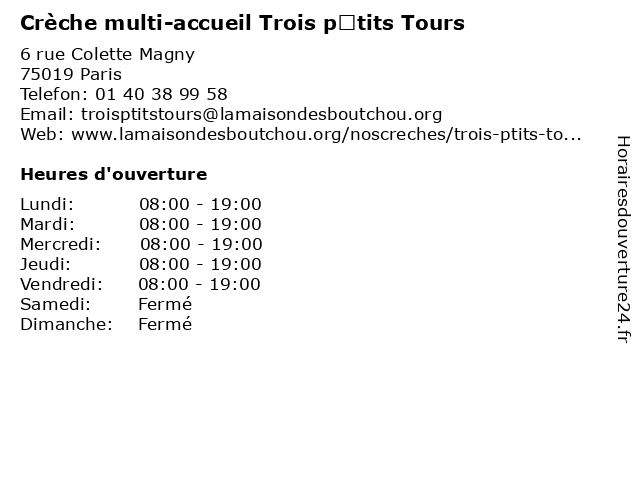 | Lundi | 08:00-19:00 |