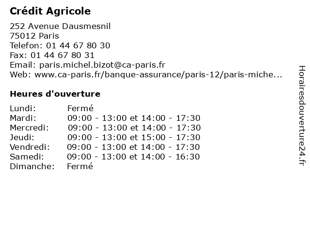 1 Crédit Agricole (Distance: 0,00 km) 124 Avenue Daumesnil, 75012 Paris agence, agricole, assurance, banque, credit, crédit, mutuel, pyrenees 2 Crédit Agricole (Distance: 0,50 km) 252 ,avenue Dausmesnil, 75012 Paris agricole, credit, crédit, du, l'argent, l'épargne, le crédit, les banques, les prêts 3 Crédit Agricole (Distance: 1,22 km) 245 rue de Charenton, 75012 Paris agricole, credit, crédit, du, l'argent, l'épargne, le crédit, les banques, les prêts 4 Crédit Agricole (Distance: 1,56 km) 79 Rue de Paris, 94220 Charenton Le Pont agence, agricole, assurance, bancaire, banque, crédit 5 Crédit Agricole (Distance: 1,67 km) 11 Rue de l'Aubrac, 75012 Paris agence, agricole, assurance, bancaire, banque, crédit 6 Crédit Agricole (Distance: 2,37 km) 209 bd Voltaire, 75011 Paris agricole, credit, crédit, du, l'argent, l'épargne, le crédit, les banques, les prêts |