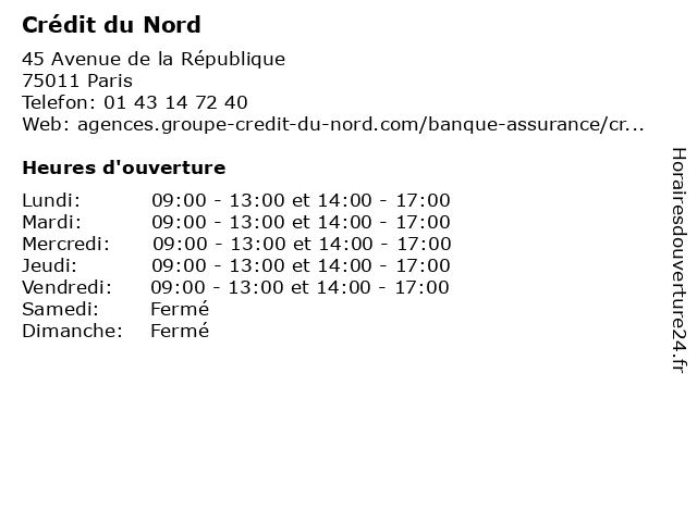 1 Crédit du Nord (Distance: 1,06 km) 52 boulevard Magenta, 75010 Paris agences, banque, billets, crédit, du, nord, services 2 Crédit du Nord (Distance: 1,24 km) 360 Rue des Pyrénées, 75020 Paris agence, banques, crédit, crédit du nord, du, nord, secrétan 3 Crédit du Nord (Distance: 1,48 km) 101 Avenue Philippe Auguste, 75011 Paris agence, assurance, bancaire, banque, crédit, du, nord 4 Crédit du Nord (Distance: 1,51 km) 47 Rue Saint-Antoine, 75004 Paris agence, banques, crédit, crédit du nord, du, nord, secrétan 5 Crédit du Nord (Distance: 1,62 km) 252 Rue Saint-Martin, 75003 Paris agence, banques, crédit, crédit du nord, du, nord, secrétan 6 Crédit du Nord (Distance: 1,84 km) 15 Place d'Aligre, 75012 Paris agence, assurance, bancaire, banque, crédit, du, nord |