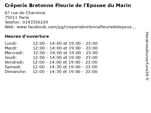 | Dimanche | 12:00-14:30 et 19:00-23:00 |