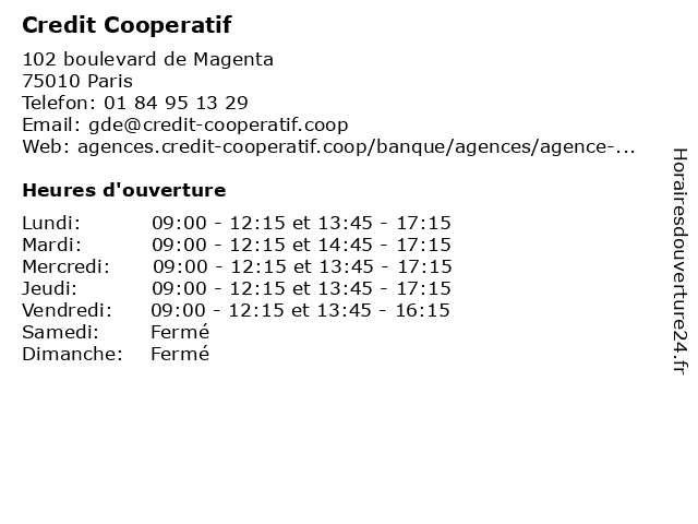 1 Credit Cooperatif (Distance: 1,15 km) 102 Boulevard De Magenta, 75479 Paris banque, cooperatif, credit, services 2 Credit Cooperatif (Distance: 2,91 km) 252 Boulevard Voltaire, 75544 Paris banque, cooperatif, credit, services 3 Credit Cooperatif (Distance: 4,33 km) 80 Rue de Courcelles, 75008 Paris agence, assurance, bancaire, banque, cooperatif, credit 4 Credit Cooperatif (Distance: 5,21 km) 99 Rue De La Tombe, 75014 Paris banque, cooperatif, credit, services 5 Credit Cooperatif (Distance: 10,72 km) 12 Boulevard Pesaro, 92024 Nanterre banque, cooperatif, credit, services 6 Credit du Nord (Distance: 0,53 km) 52 Boulevard de Magenta, 75010 Paris credit, crédit, du, l'argent, l'épargne, le crédit, les banques, les prêts, nord |