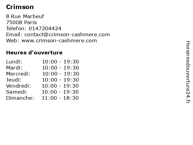| Samedi | 10:00-19:30 |
