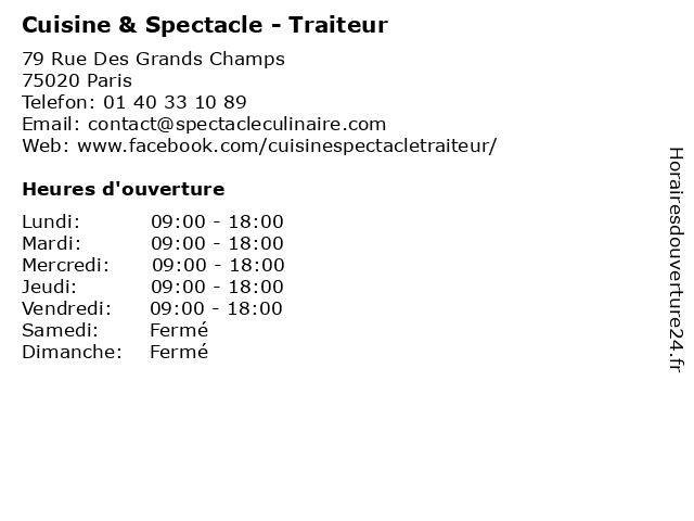 1 Cuisine Mode d'Emploi's (Distance: 0,70 km) 7 Rue Albert Marquet, 75020 PARIS cuisine, d'emploi's, mode 2 La p Tite Cuisine De Picpus (Distance: 1,05 km) 28 Rue De Picpus, 75012 Paris cuisine, garciron, picpus, restaurants, tite 3 Centre de formation professionnelle aux techniques du spectacle (Distance: 1,36 km) 92 avenue Gallieni, 93177 Bagnolet cedex aux, centre, de, decorateurs, du, formation, formation regisseurs, professionnelle, spectacle, techniques 5 Charlotte Cuisine (Distance: 1,55 km) Charlotte Cuisine, 75016 Paris charlotte, cuisine, gilly, langlois, restaurants 6 O'kyoto Okyoto Traiteur (Distance: 1,57 km) 15 Rue Du Capitaine Ferber, 75020 Paris jap, kyoto, o'kyoto, okyoto, pizza, restaurants, star, traiteur |