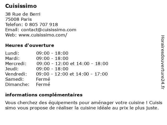 | Mercredi | 09:00-12:00 et 14:00-18:00 |
