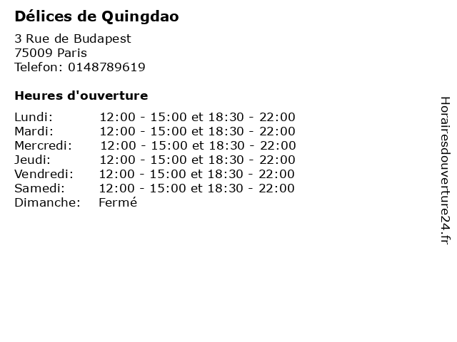 | Mercredi | 12:00-15:00 et 18:30-22:00 |
