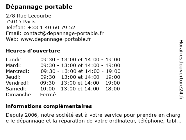 | Samedi | 10:00-13:00 et 14:00-18:00 |