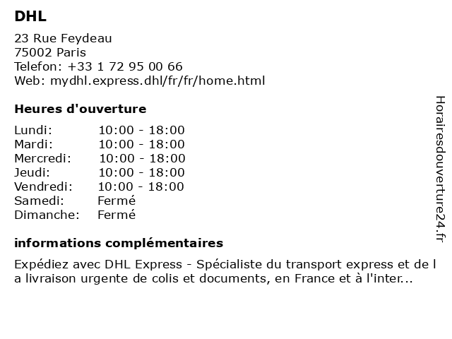 1 DHL (Distance: 1,84 km)30 Rue la Boétie, 75008 Paris dhl