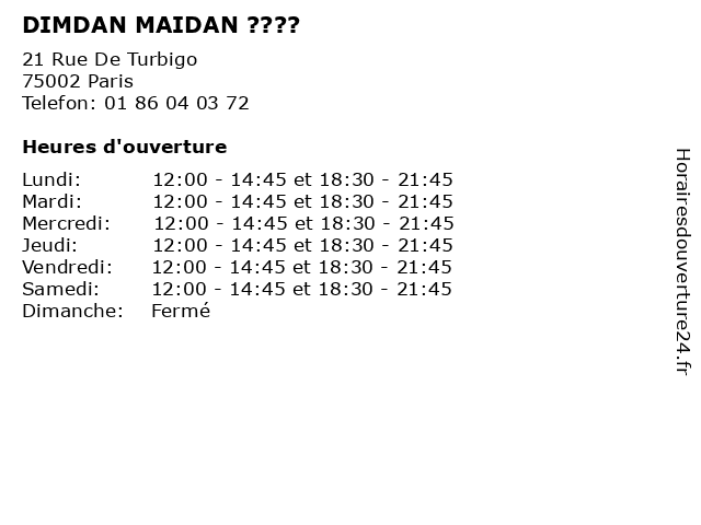 | Mardi | 12:00-14:45 et 18:30-21:45 |