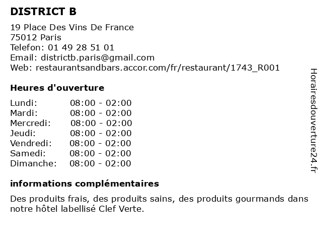 Termes de recherche pour DISTRICT B:district, restaurant français |