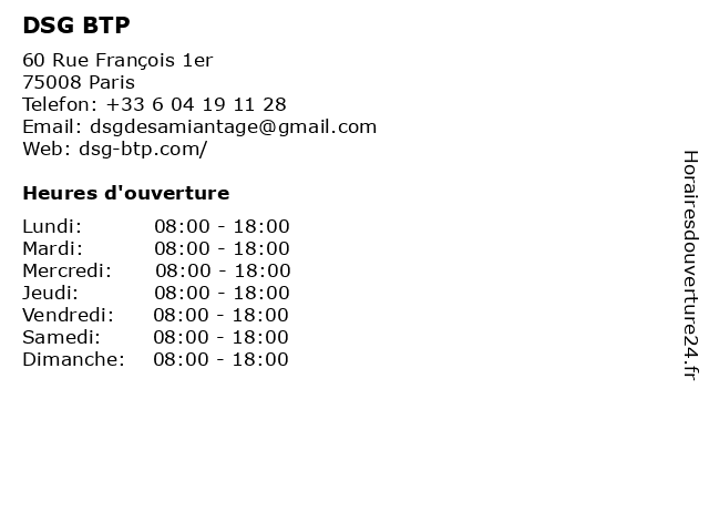 | Samedi | 08:00-18:00 |