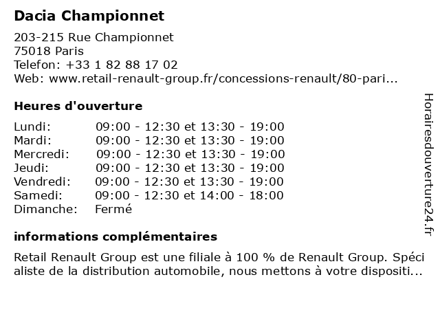 1 Renault Paris Championnet (Distance: 0,00 km) 203 Rue Championnet, 75018 Paris championnet, paris, renault 2 Championnet Automobiles - Car park (Distance: 0,01 km) 203 Rue Championnet, 75018 Paris automobiles, car, car parking, championnet, park, services 3 Renault service Championnet (Distance: 0,02 km) 203-215 Rue championnet, 75018 Paris atelier de réparation automobile, championnet, concessionnaire automobile, entretien automobile, magasin de pièces automobiles, renault, service 4 Renault occasion Championnet (Distance: 0,02 km) 203-215 Rue championnet, 75018 Paris atelier de réparation automobile, championnet, concessionnaire automobile, entretien automobile, magasin de pièces automobiles, occasion, renault 5 Renault pièces de rechange et accessoires Championnet (Distance: 0,02 km) 203-215 Rue championnet, 75018 Paris accessoires, atelier de réparation automobile, championnet, concessionnaire automobile, de, entretien automobile, et, pièces, rechange, renault 6 |