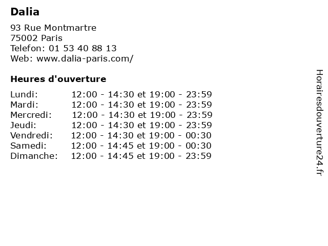 | Mardi | 12:00-14:30 et 19:00-23:59 |
