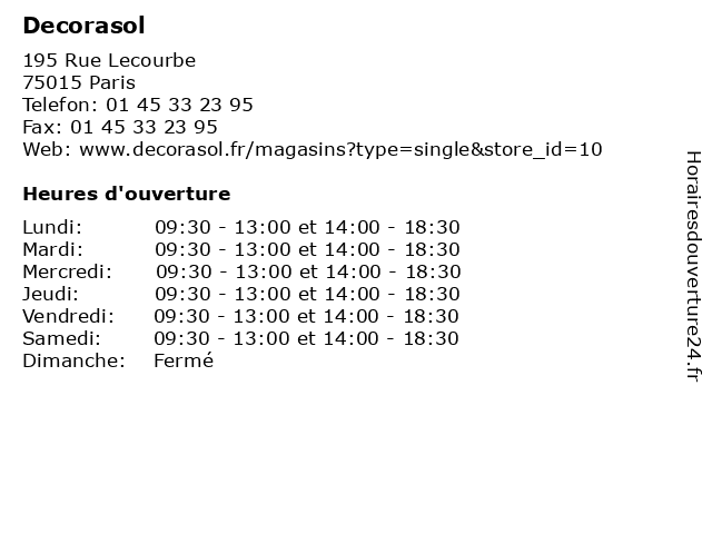 | Samedi | 09:30-13:00 et 14:00-18:30 |