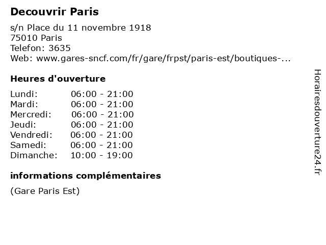 | Samedi | 06:00-21:00 |