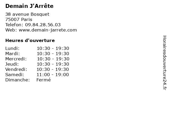 1 Demain J'Arrête (Distance: 3,40 km) 58 rue du Faubourg Montmartre, 75009 Paris cigarette, cigarettes, demain, e-liquide, electroniques, j'arrête, vapotage, vapote, vapoteur, électronique 2 4 Aujourd’hui Demain (Distance: 5,16 km) 42 Rue du Chemin Vert, 75011 Paris aujourd’hui, demain, paris, restaurant, végan, végétalien 5 Hier et Demain (Distance: 5,78 km) 99 Rue des Rosiers, 93400 Saint-Ouen architecture, art forain, bijoux, céramiques, demain, et, hier, mobilier, peintures & arts graphiques 6 Hier et Demain (Distance: 5,78 km) 99 Rue des Rosiers, 93400 Saint-Ouen architecture, art forain, bijoux, céramiques, demain, et, hier, mobilier, peintures & arts graphiques |