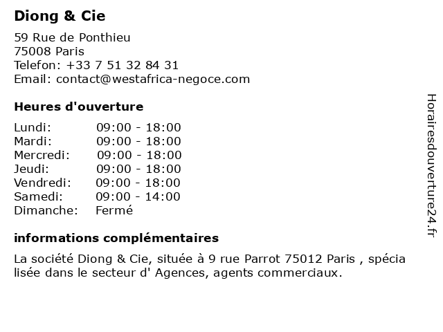 1 Cie Fr De Restauration (Cfr) (Distance: 0,23 km) 95 Rue La Boetie, 75008 Paris cfr, restaurants, restauration 2 Lunettes & Cie (Distance: 1,42 km) 94 rue Saint-Dominique, 75007 Paris cie, lentilles, lunettes, optic, opticien, optique, vision, vue 3 Juniors&Cie (Distance: 1,59 km) . Place du 11 novembre 1918, 75010 Paris cafe, care, chaussures, enfants, homme, juniors&cie, lingerie, mode femme, restaurant, service, shopping 4 Lucioles et cie (Distance: 1,74 km) 75 Rue Bayen, 75017 Paris cie, crèches, et, lucioles, services, services à la personne 6 Mypop Cie Burgers (Distance: 3,09 km) 12 Rue de Linois, 75015 Paris beaugrenelle, burgers, centre, cie, commercial, mypop, paris |