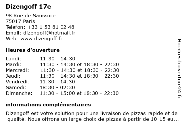 | Samedi | 18:30-02:30 |