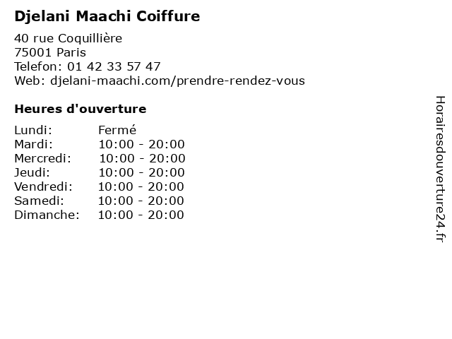1 Cheveu Cheveux Coiffure (Distance: 0,03 km) 35 Rue Coquillière, 75001 Paris cheveu, cheveux, coiffeur, coiffure, coloration, coupe, mèche 2 David Mallett Coiffure (Distance: 0,28 km) 14 rue Notre-Dame des Victoires, 75002 Paris coiffeur, coiffure, david, mallett, salon 3 Salon De Coiffure Isaura (Distance: 0,33 km) 6-8 Rue Vivienne, 75002 Paris coiffure, de, divertissement, isaura, jouet, salon 4 Yodji Coiffure (Distance: 0,46 km) 21 Rue Vivienne, 75002 Paris beaute, coiffure, coiffures, coloration, coupes, yodji, épilation 5 BonHomme Coiffure (Distance: 0,66 km) 122 Rue Saint-Denis, 75002 Paris bonhomme, coiffeur homme, coiffeur paris, coiffeuse, coiffure, montorgueil 6 Excellence Coiffure (Distance: 1,11 km) 19 Rue la fayette, 75009 Paris coiffeur, coiffure, excellence, paris |