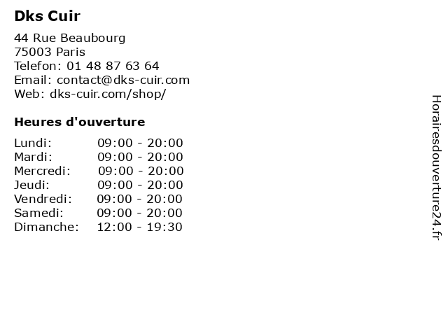 1 Cuir Center (Distance: 0,50 km) 107 Boulevard de Sébastopol, 75002 Paris canapes, center, cuir, deco, meubles, services 2 Delsey - LA BOUTIQUE DU CUIR (Distance: 0,55 km) 6 Boulevard Sébastopol, 75004 Paris bags, boutique, business bags, cuir, delsey, du, la, school bags, small leather goods, travel bags, travels accessories 3 Delsey - SORBONNE CUIR (Distance: 1,78 km) 46 Boulevard Saint Michel, 75006 Paris bags, business bags, cuir, delsey, school bags, small leather goods, sorbonne, travel bags, travels accessories 4 Retouches vêtements tissus & cuir (Distance: 3,08 km) 23 Rue de Campo-Formio, 75013 Paris cuir, retouches, tissus, vêtements 5 Chauss ' Cuir (Distance: 3,16 km) 65 Avenue Des Gobelins, 75013 Paris chauss, chaussures, cuir, magasins 6 La Maison du Cuir (Distance: 7,20 km) 8/9 Quai du Chatelier, 93450 L'Ile Saint Denis beaute, chaussures, cuir, du, la, lingerie, maison, mode enfants, mode femmes, mode hommes, sport |