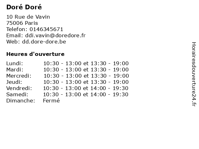 | Samedi | 10:30-13:00 et 14:00-19:30 |
