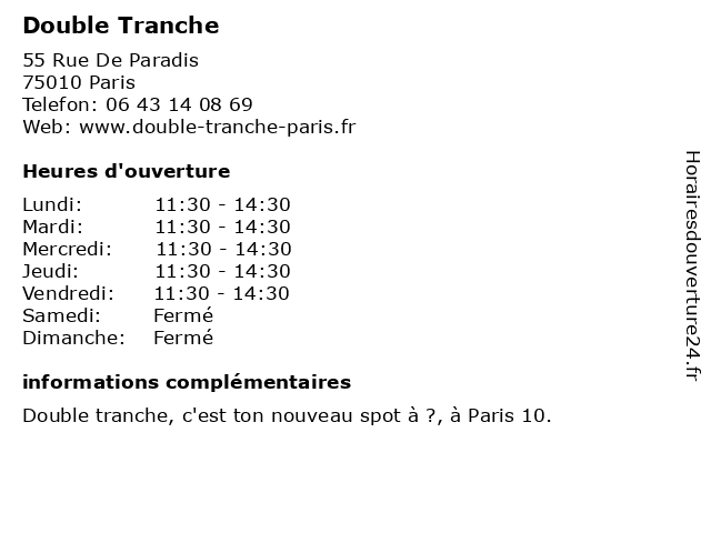 | Lundi | 11:30-14:30 |